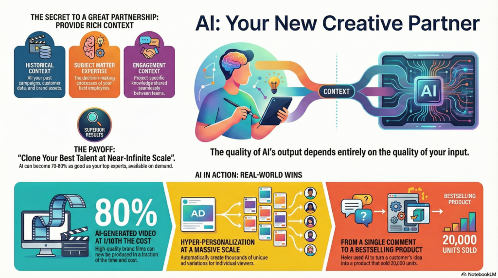 The future of creative work is a partnership where human insight guides AI’s incredible power. Your role is evolving from creator to creative director of an AI partner. Your value is no longer just in the execution, but in your taste, your strategic vision, and your ability to ask the right questions.
